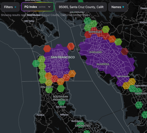 PeaceAndQuiet.io is a fabulous website-based map that shows you where you can find Peace & Quiet. Enter a zip, and it shows you where to avoid liquor stores, Section 8 housing, Boost Mobile Stores, Methadone Clinics, and gunshots. Adam entered Berkeley (near John Dvorak’s location) and then Oakland, and saw it was where he didn’t want to go for peace and quiet.